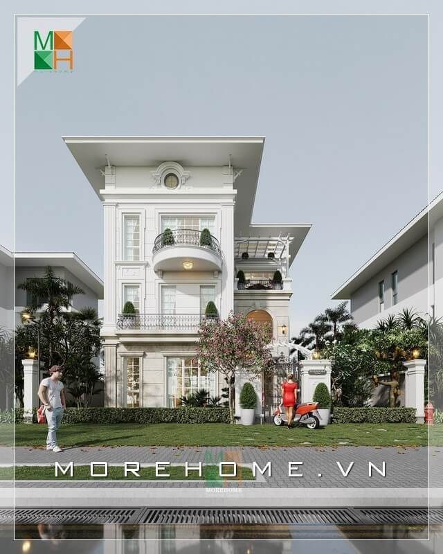 Vẻ đẹp sang trọng, cao cấp từ thiết kế kiến trúc biệt thự sơn trắng tân cổ điển đầy nghệ thuật.