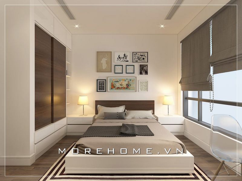 . Để căn phòng nhỏ trở nên gọn gàng hơn, ta nên tận dụng diện tích tối đa để bố trí nội thất và lược bớt những nội thất không cần thiết để tạo độ thông thoáng cần thiết.