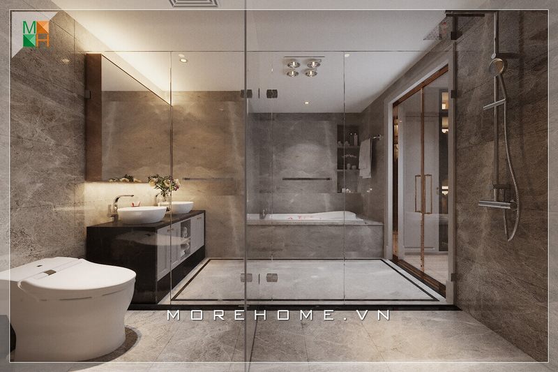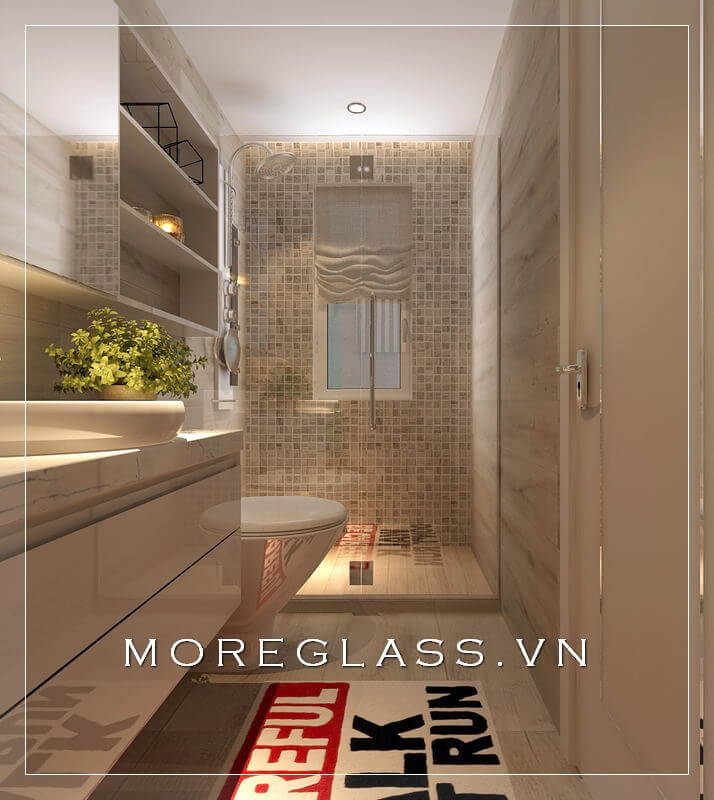 Mẫu phòng tắm được làm từ kính cường lực để phù hợp với căn hộ chung cư cao cấp.