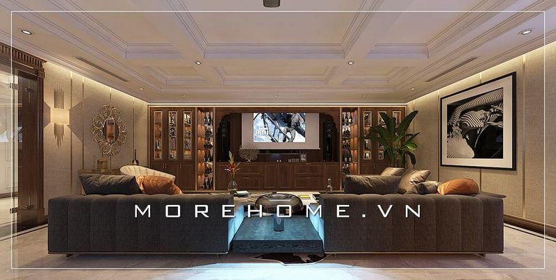 Nội thất Morehome đã sử dụng những năm kinh nghiệm của các đội thợ để hoàn thành một mẫu sofa tân cổ điển bằng gỗ óc chó kết hợp với bọc nỉ cao cấp.
